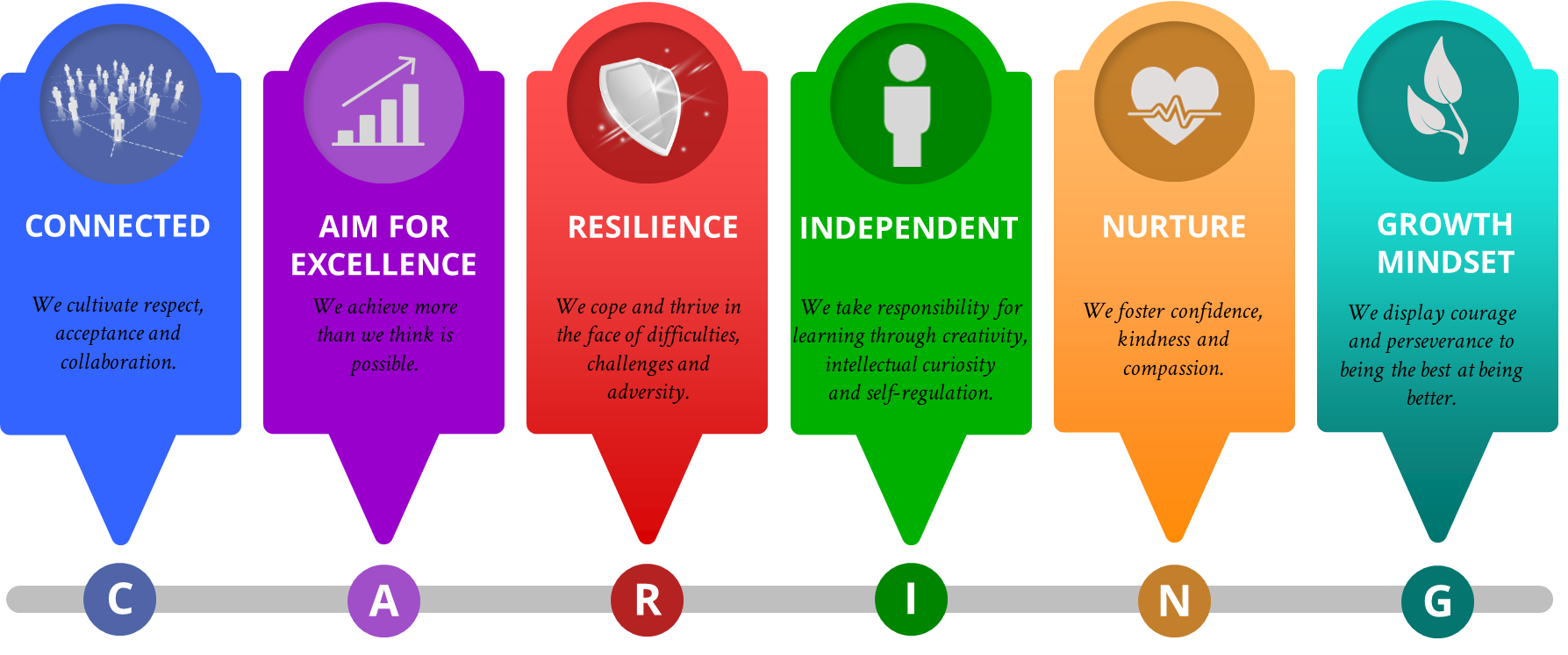 Our approach is founded on our school community's core values and beliefs of C.A.R.I.N.G